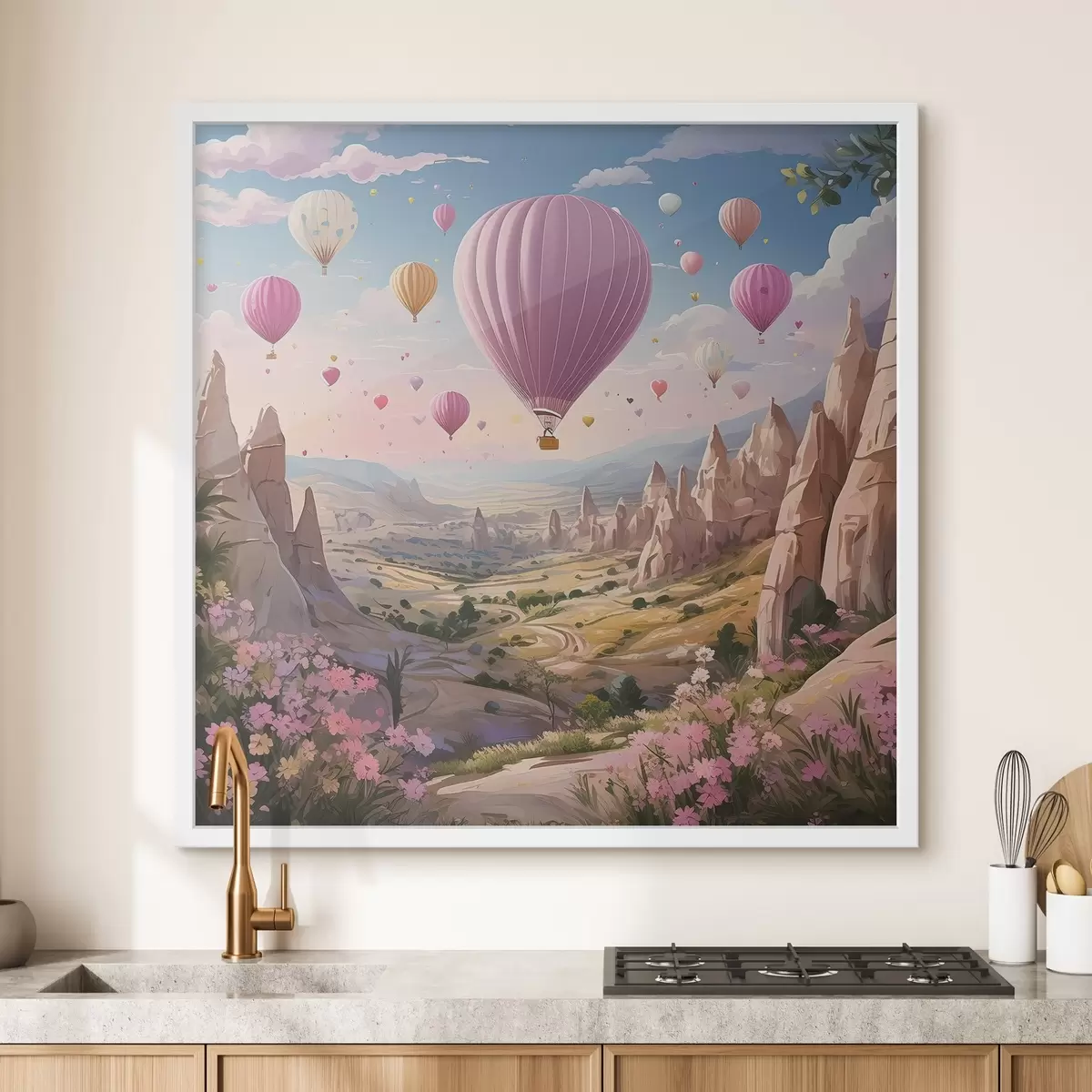 Постер на стіну повітряні кулі в горах над квітами Nr f38656