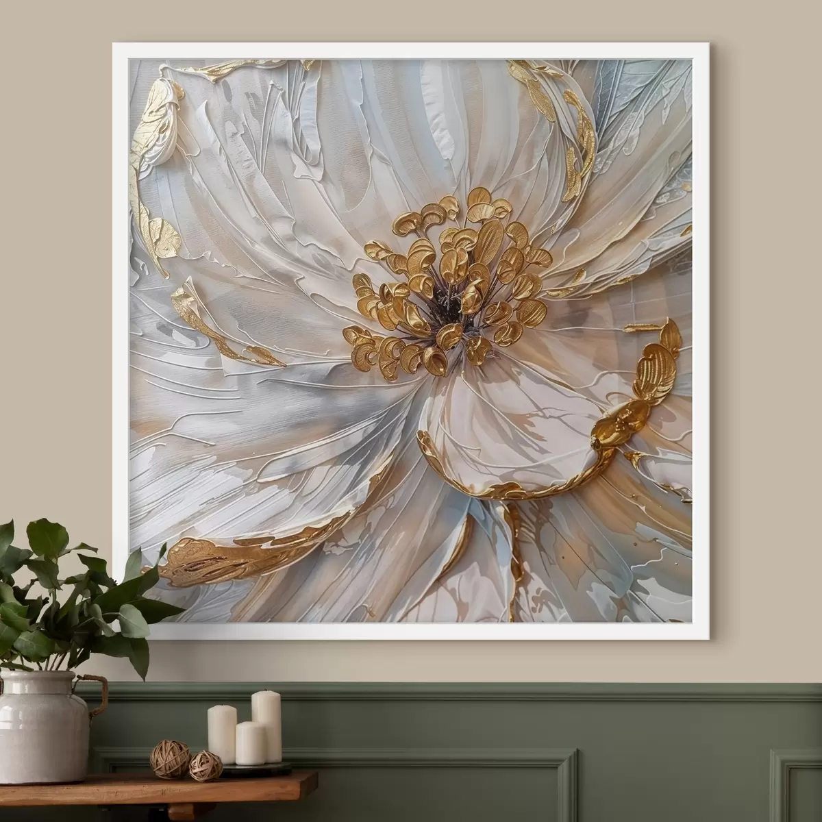 Постер на стіну Крупним планом велика біла квітка з жовтими тичинками всередині, художній розпис олійними фарбами Nr f38755