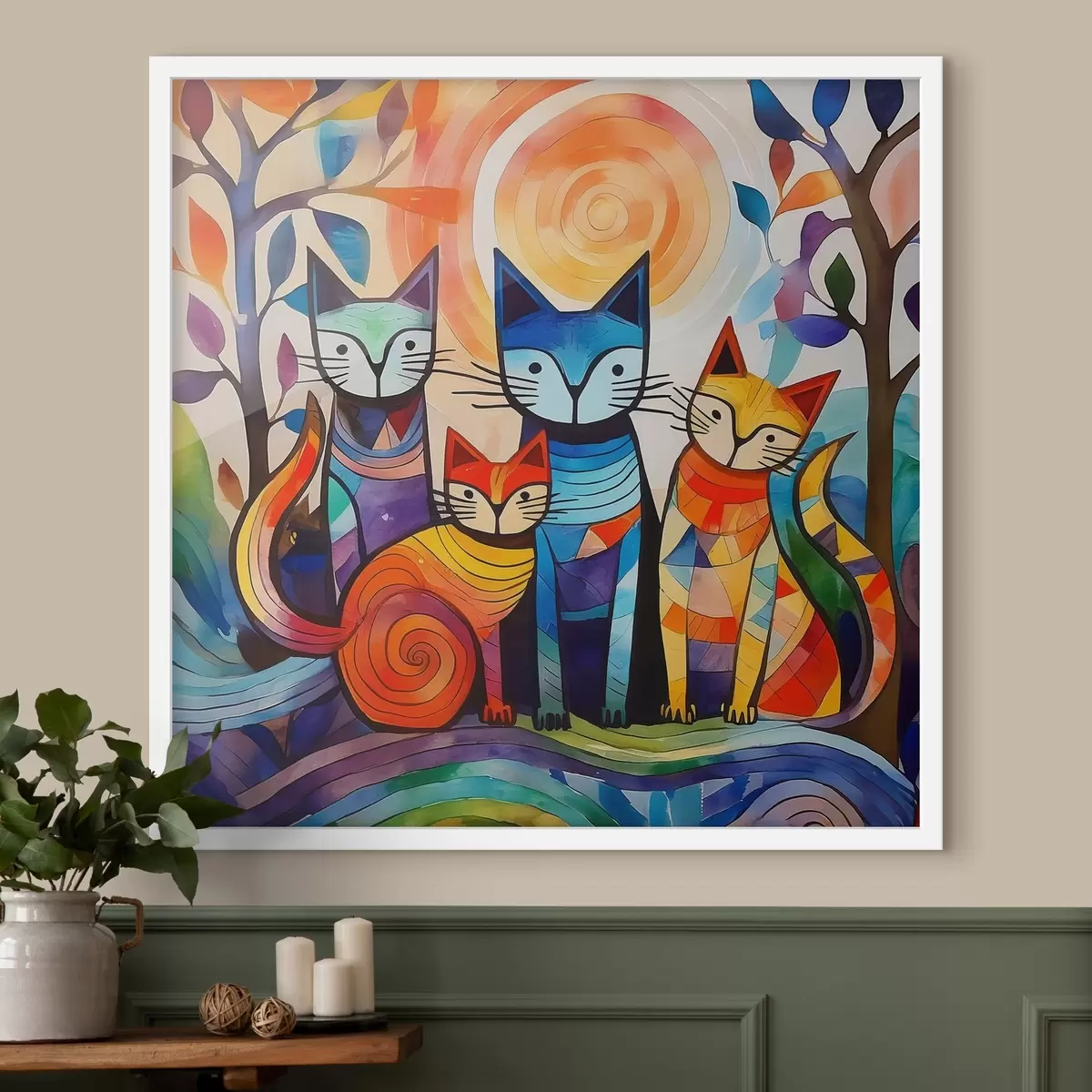 Постер на стіну Різнобарвна абстракція з цікавими котиками Nr f38815