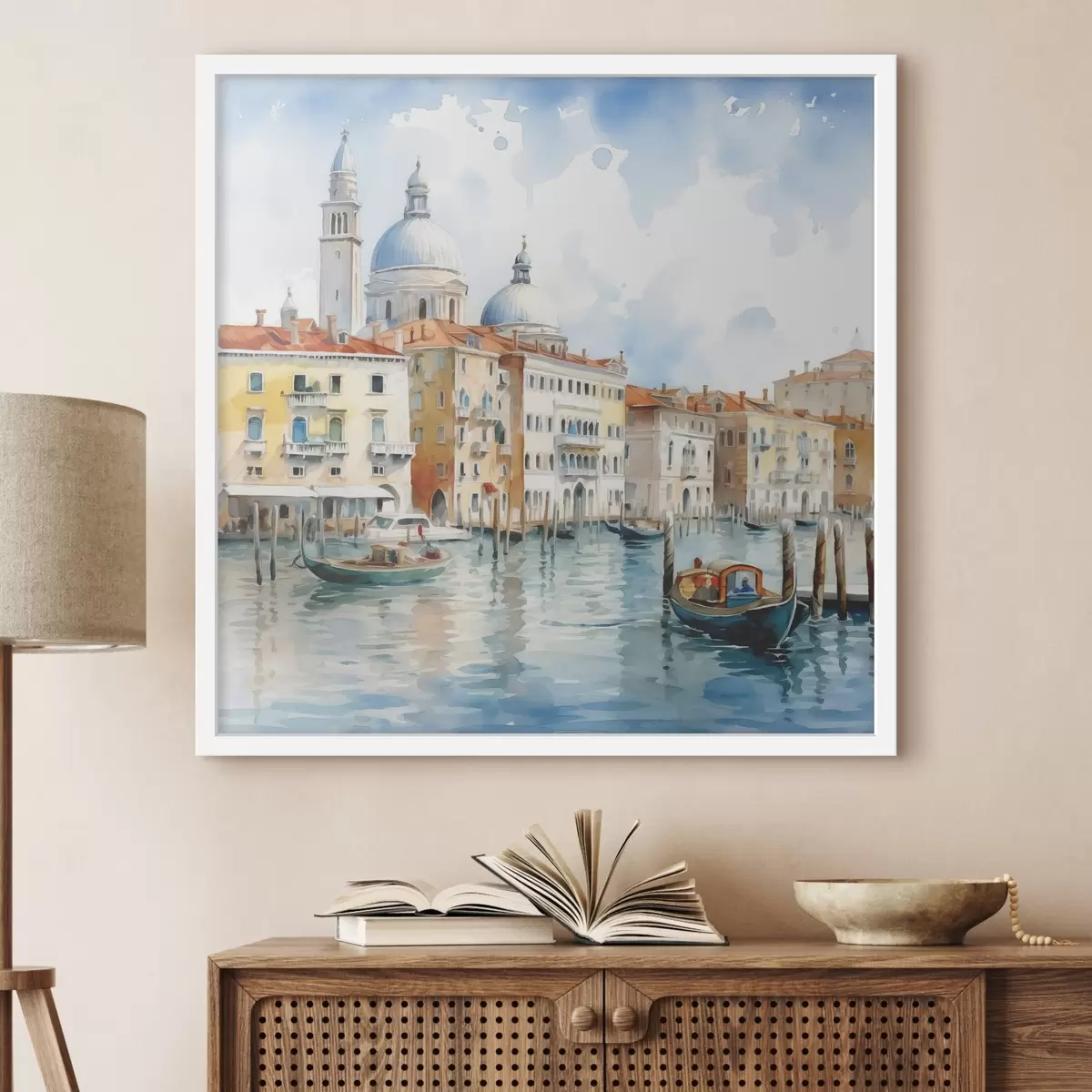 Постер на стіну Акварель Венеція пейзаж, затока, річка, архітектура, ландшафт, човни, гондола Nr f38908