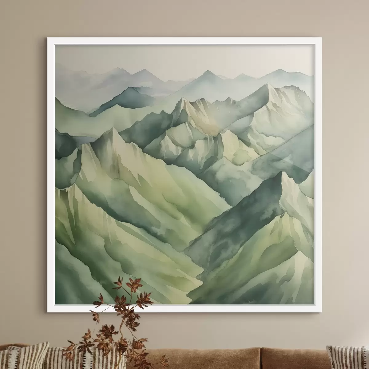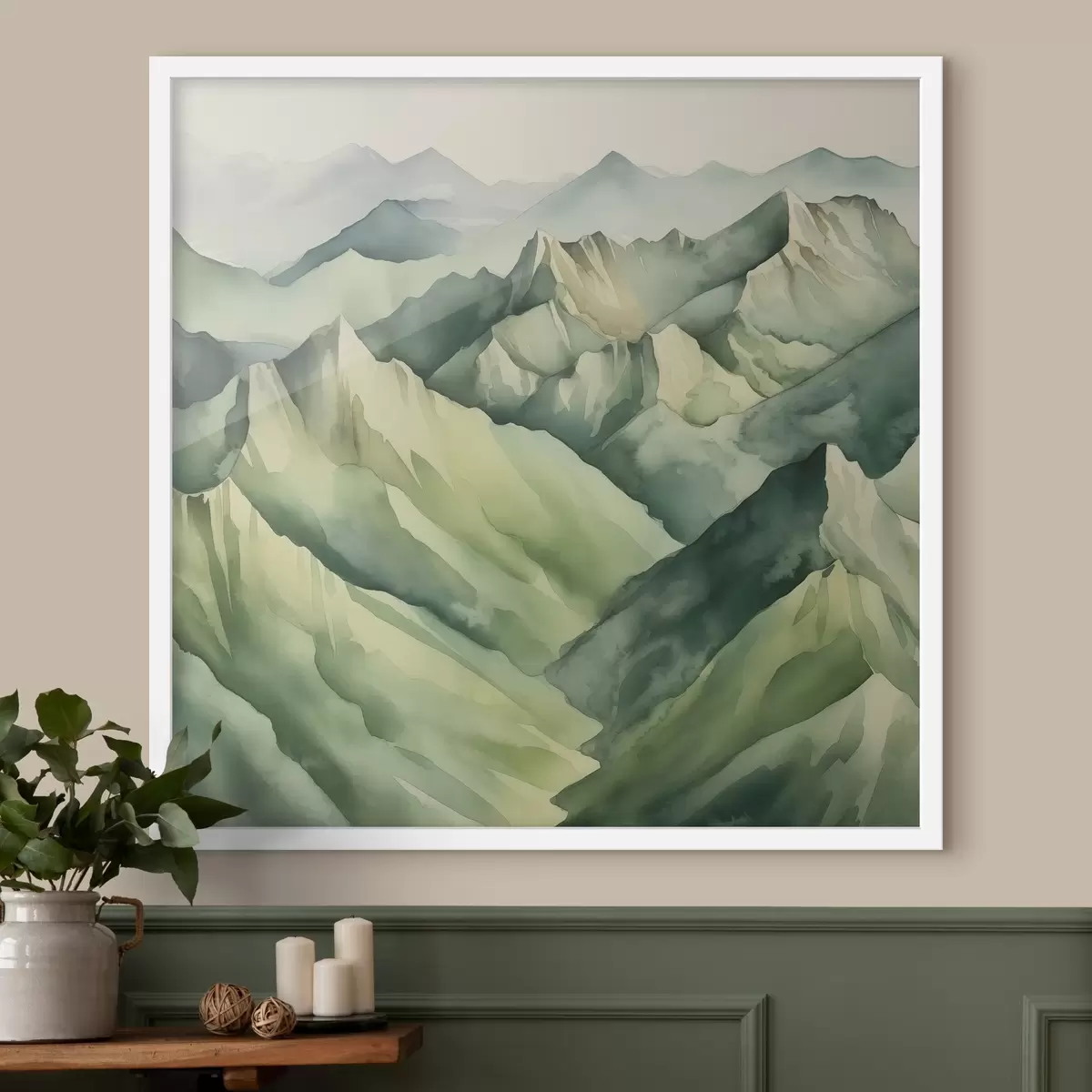 Постер на стіну Спокійні гори в м'яких зелених відтінках Nr f38909