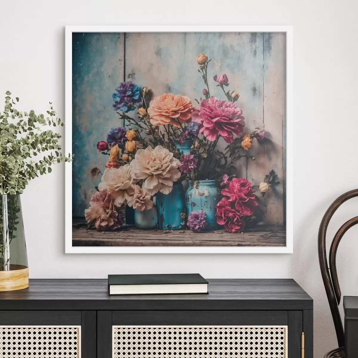 Постер на стіну Квіти та листя на тлі дерев'яної стіни Nr f39161