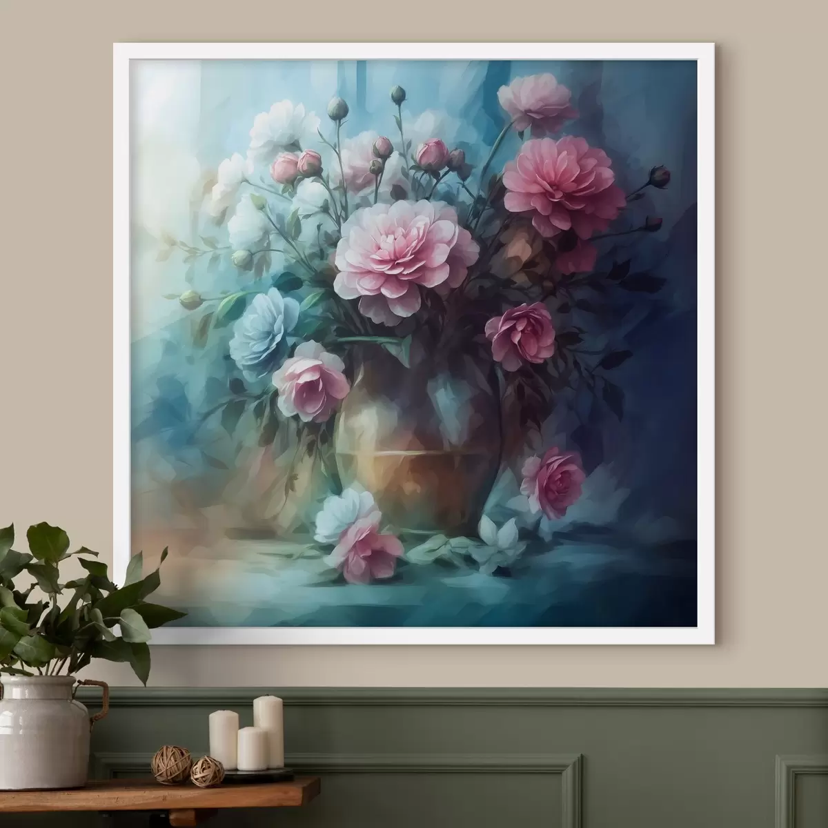 Постер на стіну Квіти у вазі на хмарному синьому тлі Nr f39164