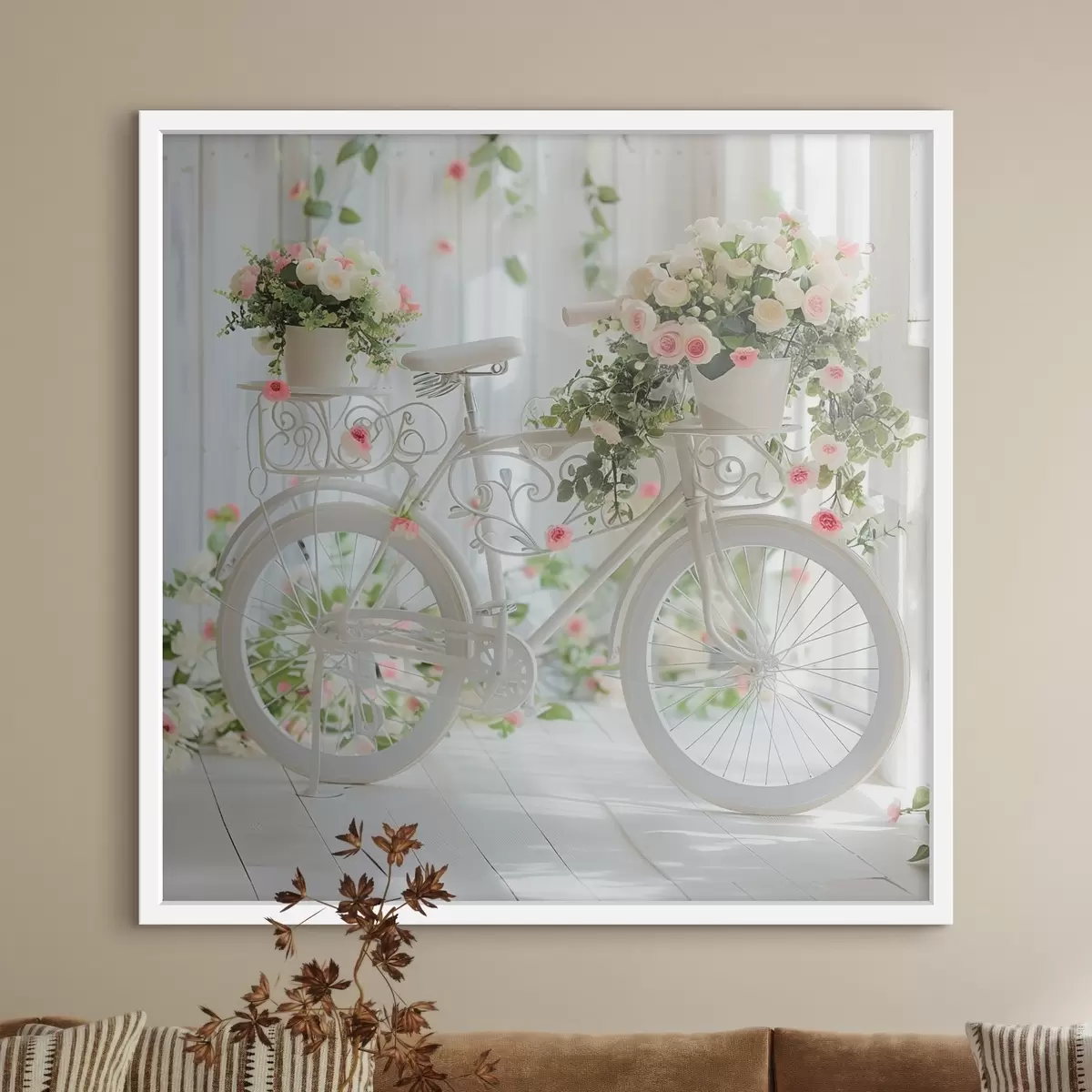 Постер на стіну Білий велосипед з кошиком квітів у провансальському стилі Nr f39243