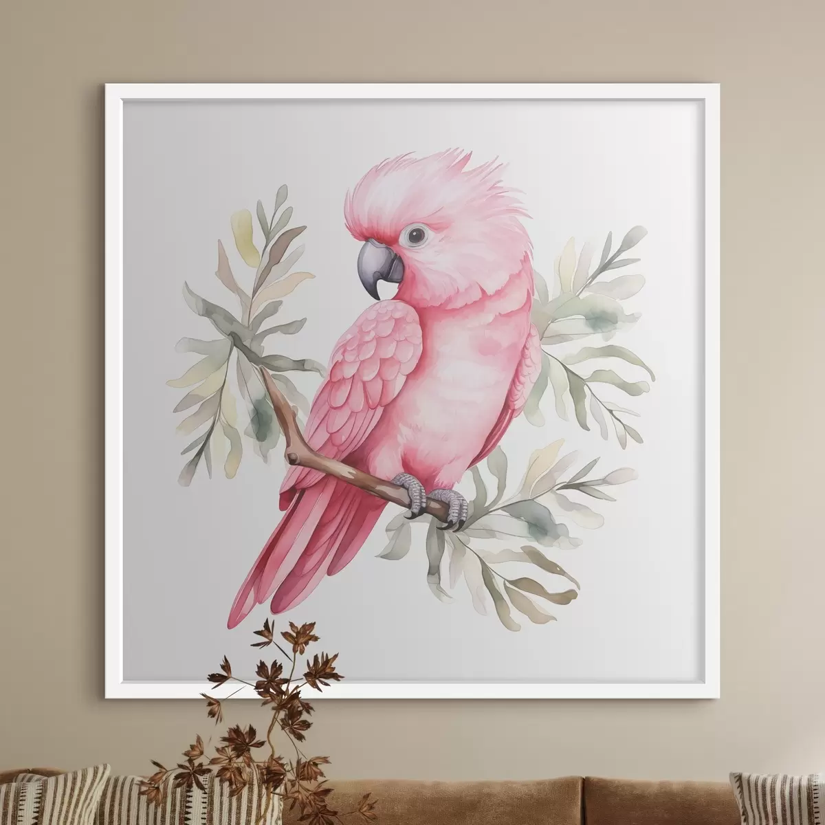 Постер на стіну Рожевий папуга какаду сидить на гілці акварелі Nr f39334