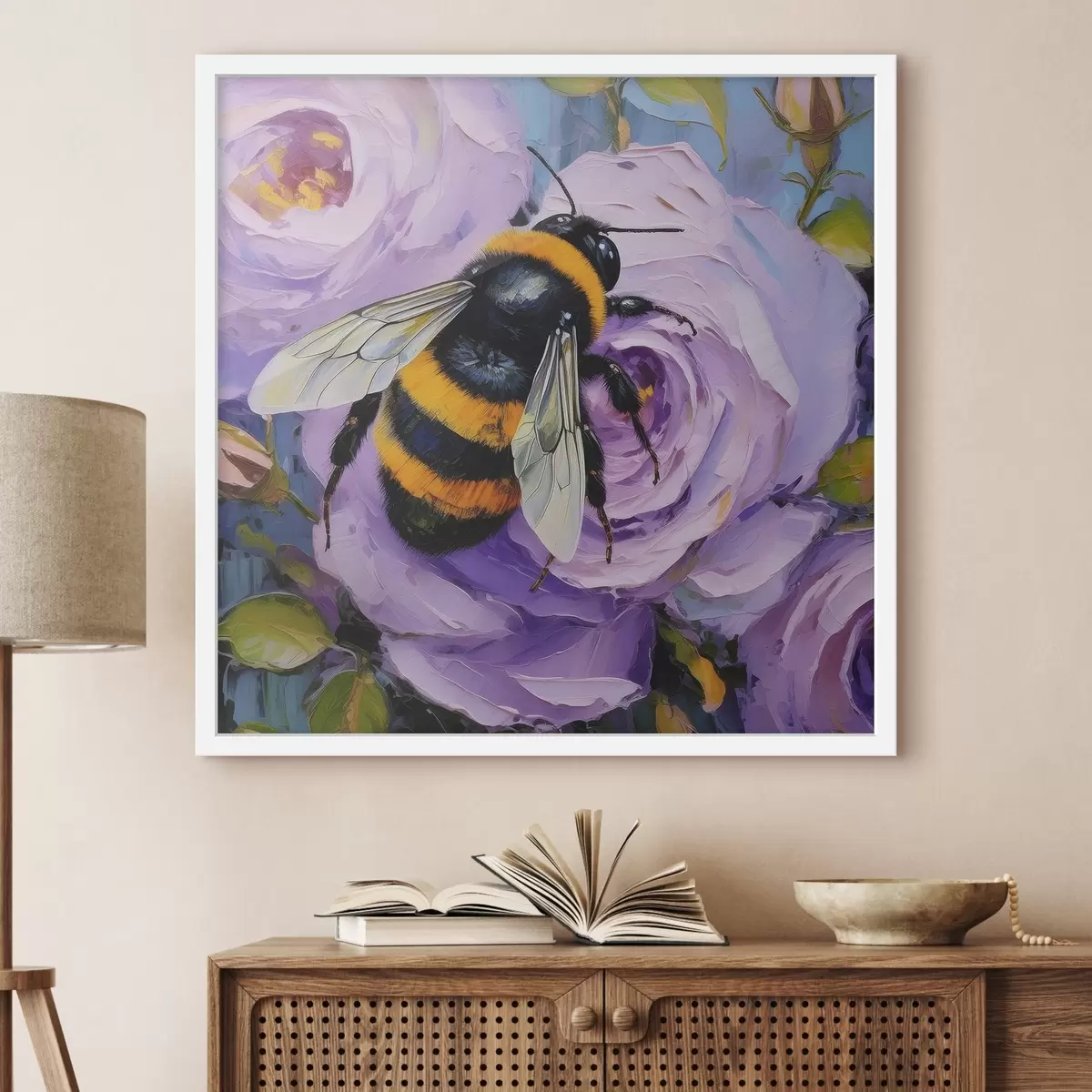 Постер на стіну Бджола на рожевих півоніях, літні квіти, олійний живопис, яскраві мазки Nr f39410