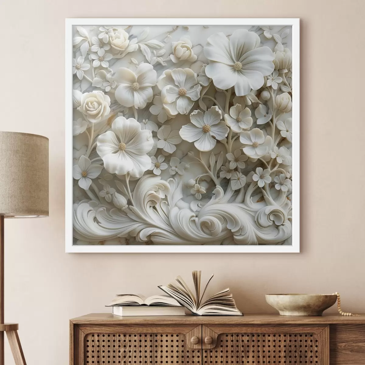 Постер на стіну Елегантний барельєф з білим квітковим мотивом Nr f39726