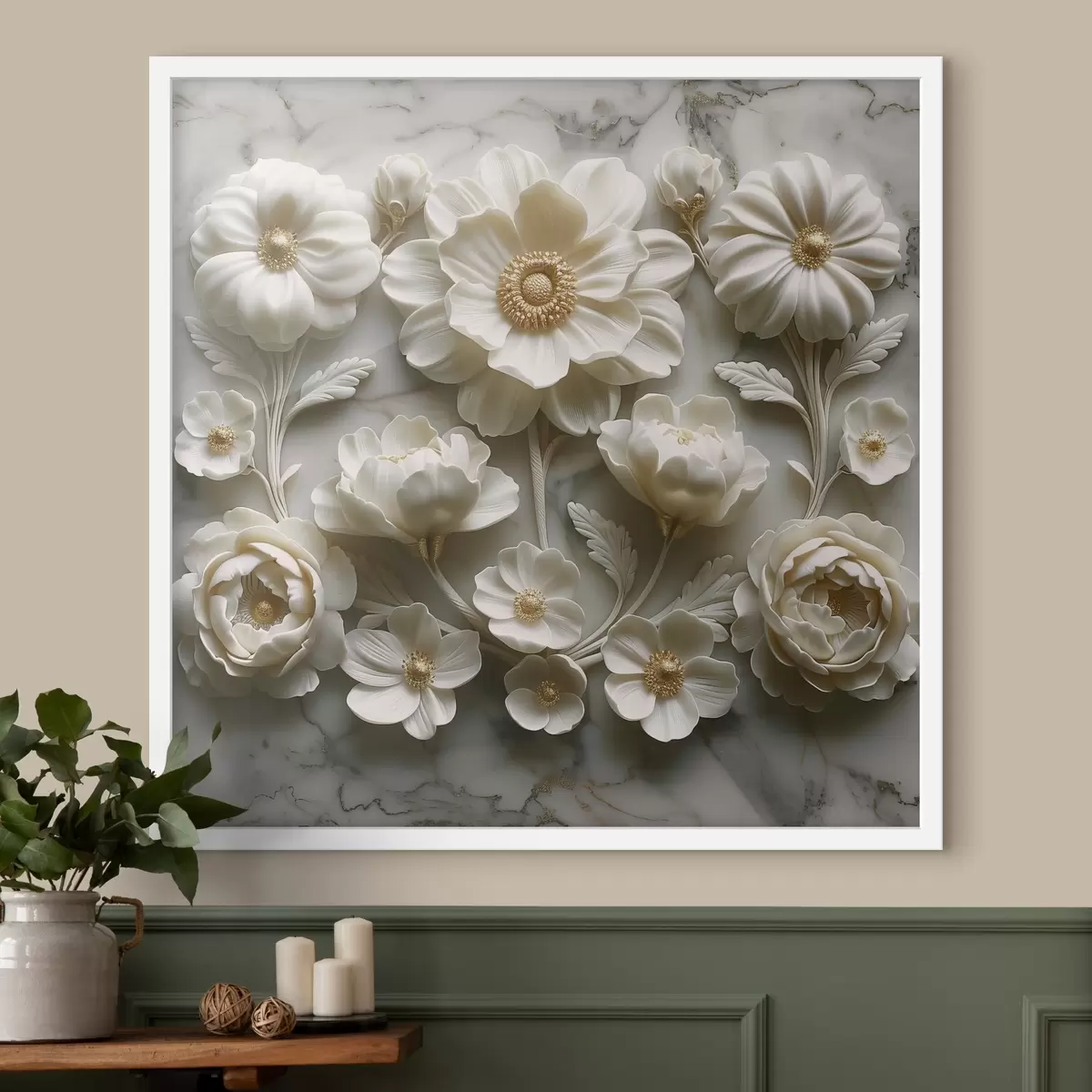 Постер на стіну 3D барельєфні квіти на мармуровому тлі Nr f39738