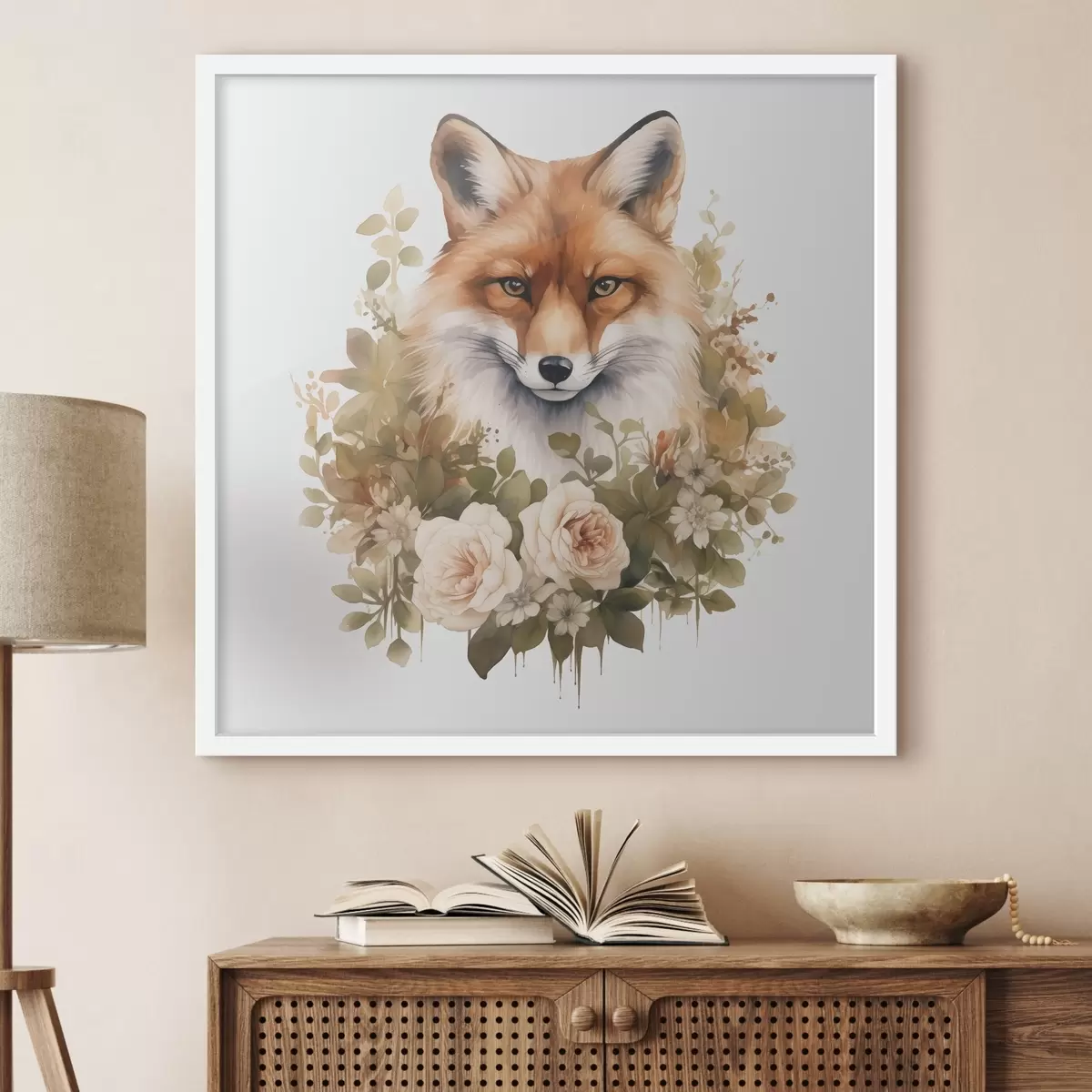 Постер на стіну Портрет лисиці в білих трояндах вінтажна акварель Nr f40093