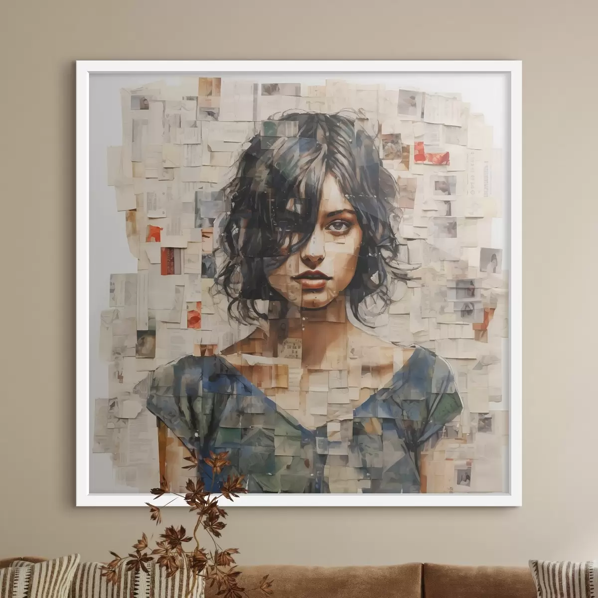Постер на стіну Дівчинка з кучерявим волоссям, обклеєним наліпками, печатками та штрих-кодом Nr f40104