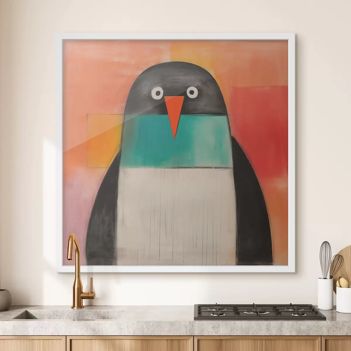 Постер на стіну Пінгвін на червоно-помаранчевому тлі плоский малюнок Nr f40217