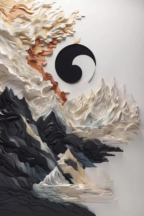 Постер на стіну Абстрактний пейзаж з горами в паперовому стилі Nr f45482