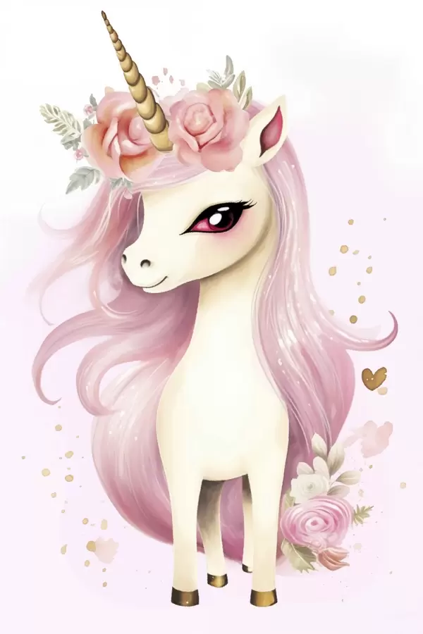 Постер на стіну Єдиноріг з рожевою гривою та квітковим вінком Nr f45484