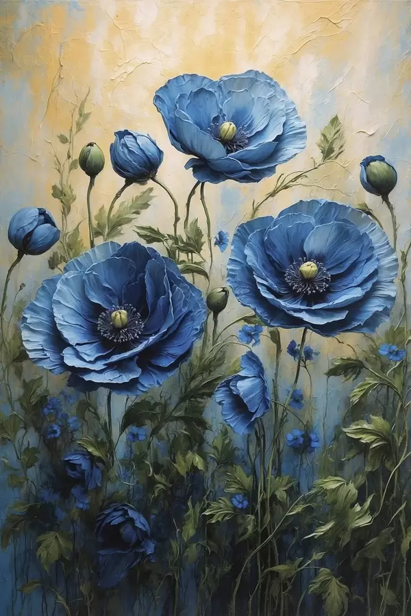 Постер на стіну Великі сині маки з бутонами на світлому тлі Nr f45488