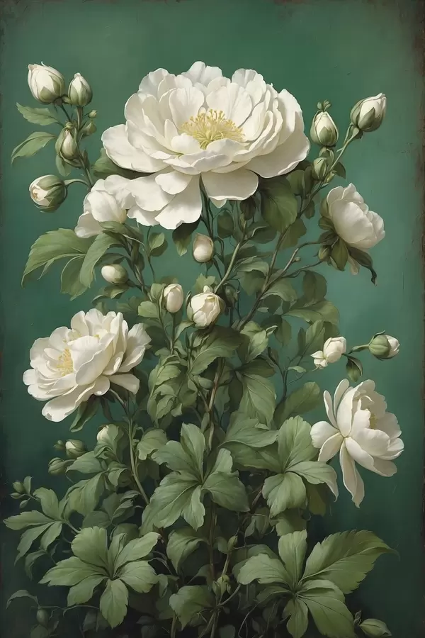 Постер на стіну Кремові квіти півонії на зеленому тлі Nr f45491