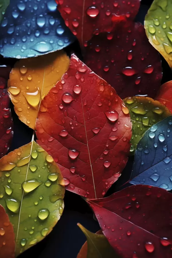 Постер на стіну Барвисте листя з крапельками води Nr f45516