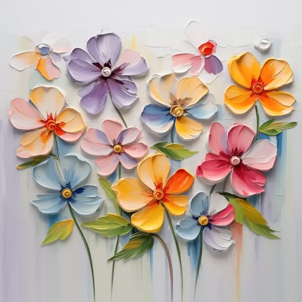 Постер на стіну Квітковий натюрморт: різнокольорові квіти в техніці імпасто Nr f45598