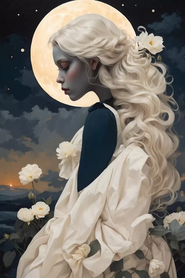 Постер на стіну Жінка з білим волоссям під місяцем Nr f45622