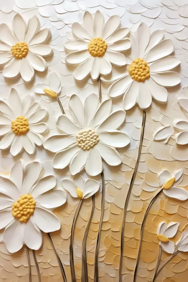 Постер на стіну Ромашки в стилі імпасто: білі пелюстки Nr f45647