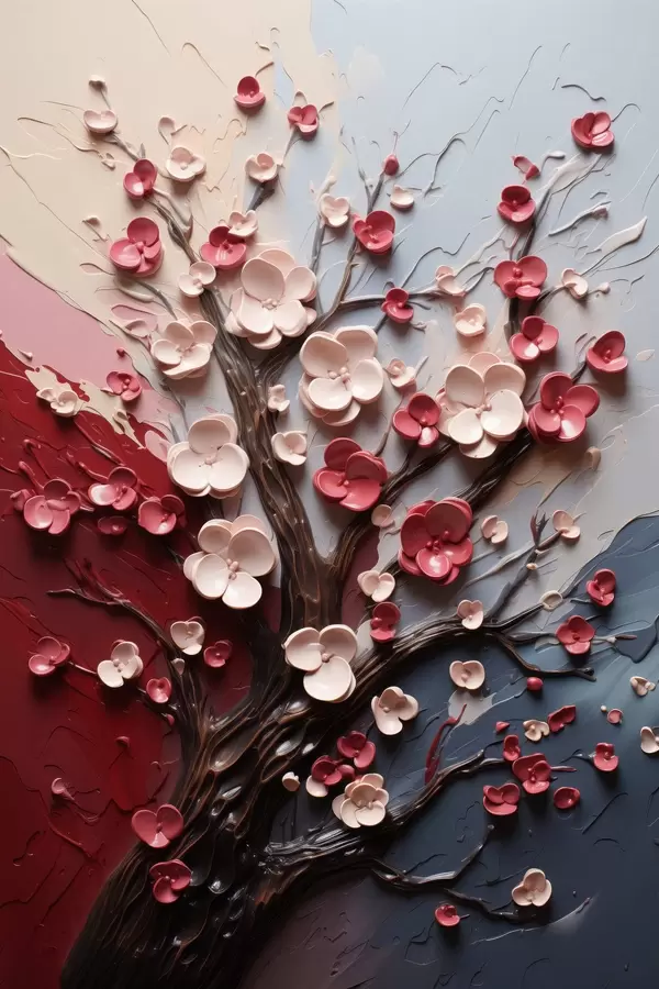 Постер на стіну Об'ємна сакура в стилі фактурного живопису Nr f45650
