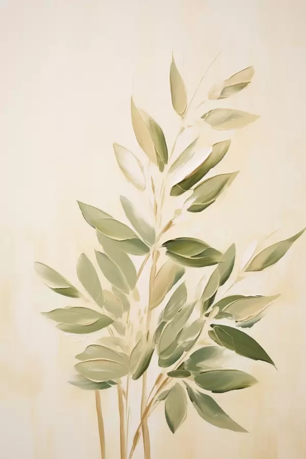 Постер на стіну Гілка з зеленим листям на світло-бежевому тлі Nr f45689