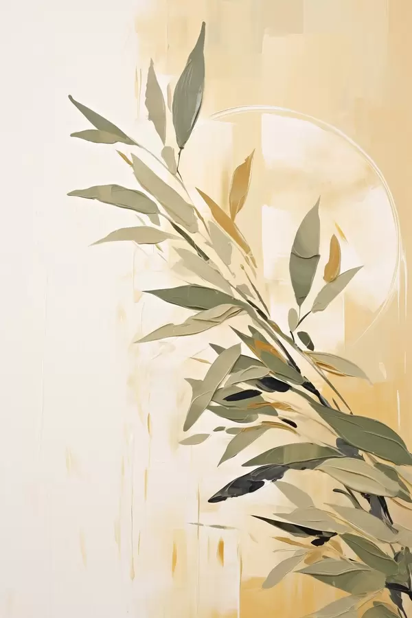 Постер на стіну Ботанічна гілка з зеленим листям на теплому тлі Nr f45690