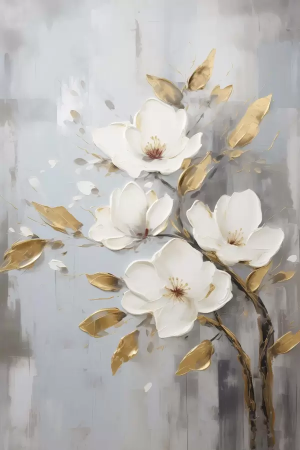 Постер на стіну Гілка з білими квітами та жовто-помаранчевим листям Nr f45692