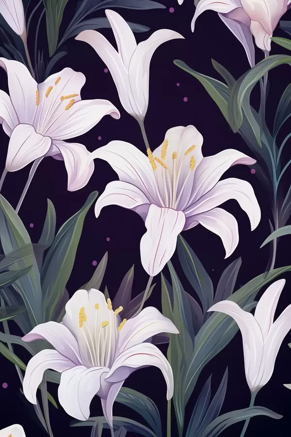 Постер на стіну Ніжні лілії на темному тлі з зеленим листям Nr f45697