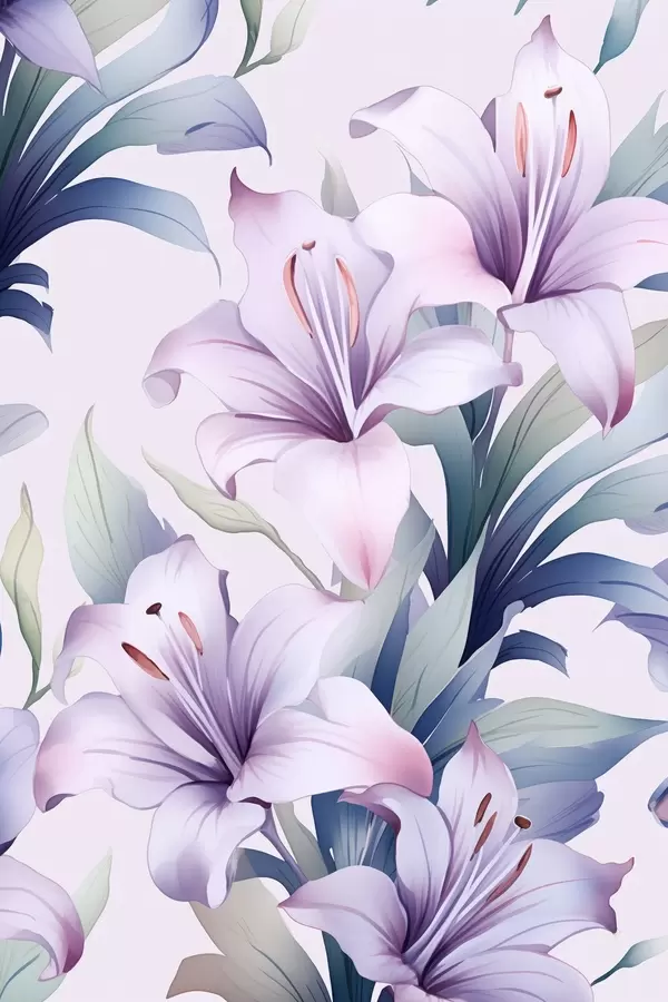 Постер на стіну Великі рожево-фіолетові лілії з зеленим листям Nr f45698