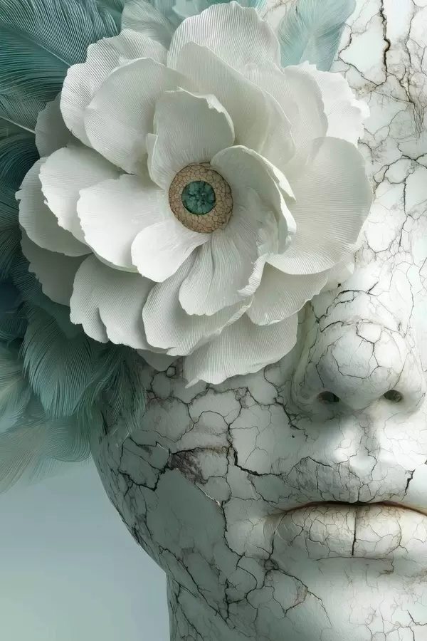 Постер на стіну мармурове обличчя дівчинки з квіткою Nr f45709