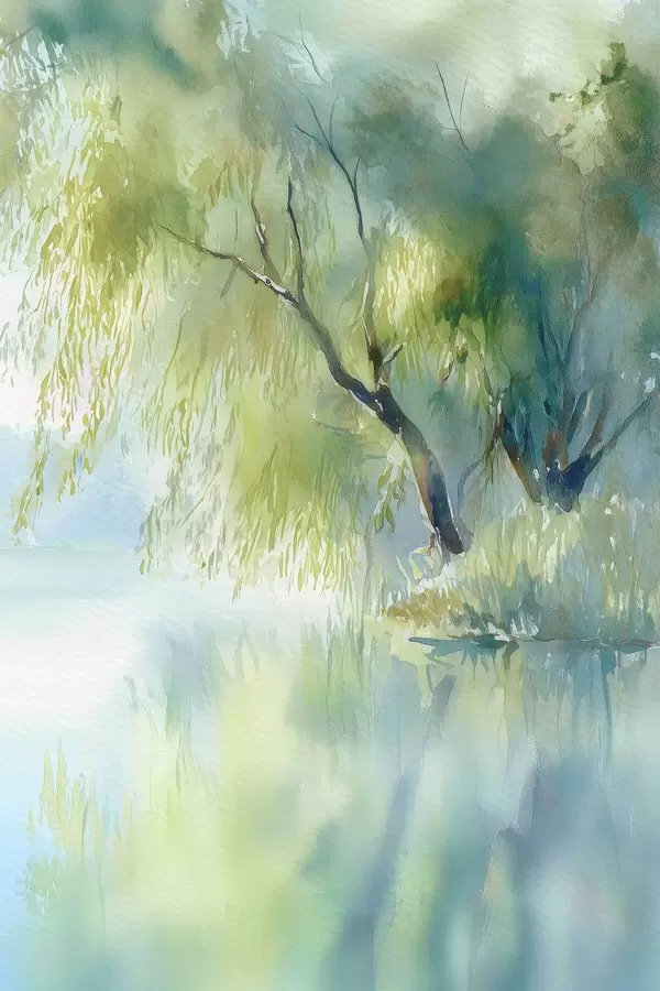 Постер на стіну верба на березі озера в акварельному стилі Nr f45715