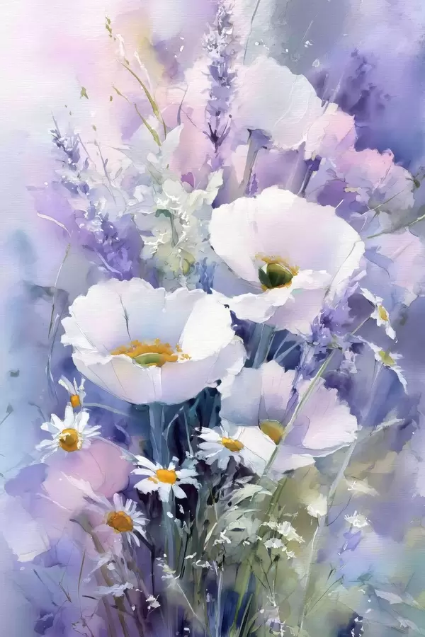 Постер на стіну акварельний букет у бузково-білих тонах Nr f45720