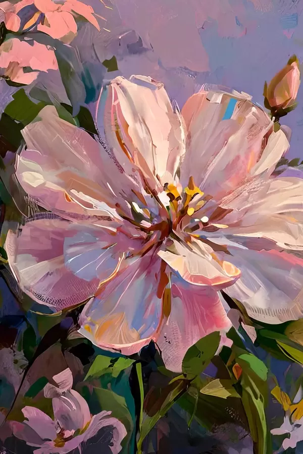 Постер на стіну рожеві квіти в стилі олійного живопису Nr f45723