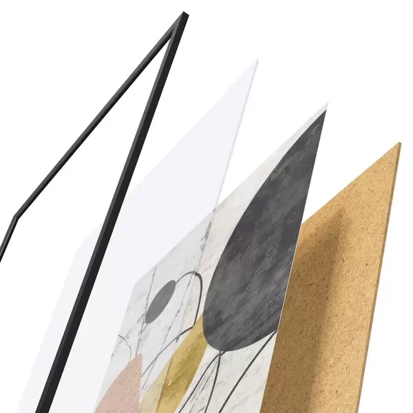 Постер складається з рами, оргскла, надрукованого зображення та підкладки з ДСП. Завдяки кріпленням на звороті плакат можна одразу ж повісити на стіну.