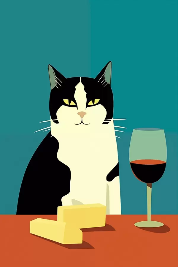 Постер на стіну Кіт з вином і сиром Nr f45801