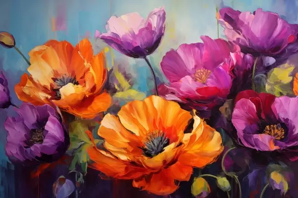 Постер на стіну Яскраві маки у фіолетових та помаранчевих відтінках Nr f45804