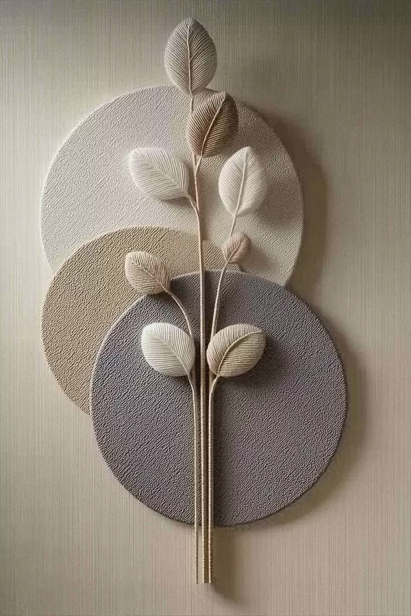 Постер на стіну Рельєфні кола та гілка в теплих нейтральних тонах Nr f45883