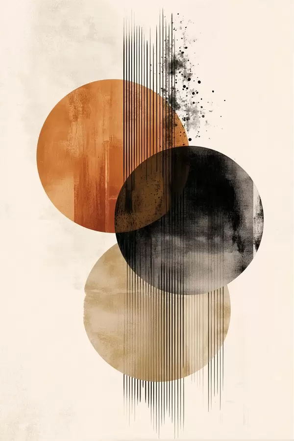 Постер на стіну Три текстуровані кола з лініями в теракотово-чорній палітрі Nr f45885