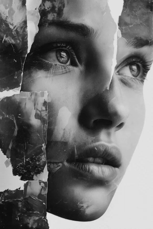 Постер на стіну Чорно-білий колаж-портрет з розірваними текстурними шарами Nr f45898