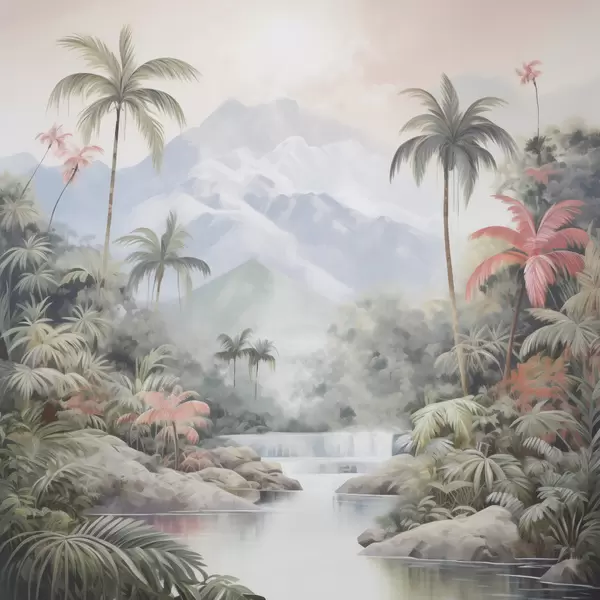 Постер на стіну Річка в тропічному лісі перед горами Nr f45913
