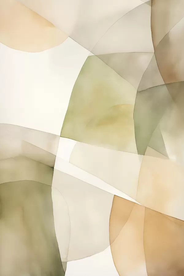 Постер на стіну Абстрактні геометричні фігури з текстурою акварелі в відтінках зеленого, коричневого та бежевого кольорів Nr f45928