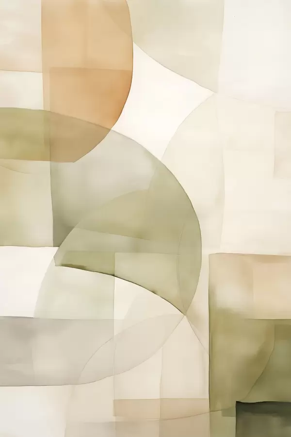 Постер на стіну Абстрактні геометричні фігури з текстурою акварелі в відтінках зеленого, коричневого та бежевого кольорів Nr f45929