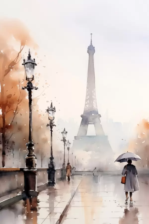 Постер на стіну Дощовий день у Парижі з Ейфелевою вежею на задньому плані та старовинними вуличними ліхтарями Nr f45930