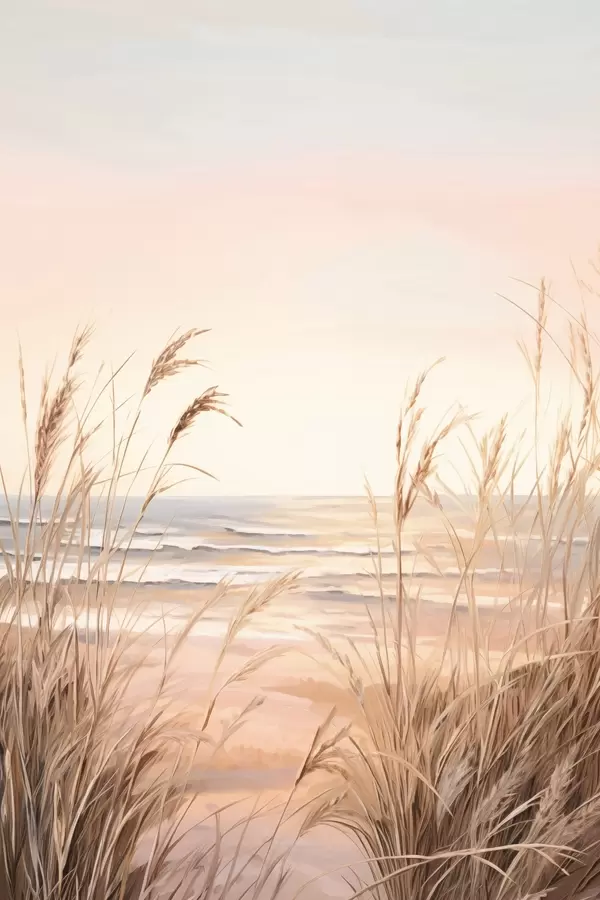 Постер на стіну Трава пампас з пастельною помаранчевою кольоровою гамою, світло-рожеве небо, спокійний пейзаж Nr f45935