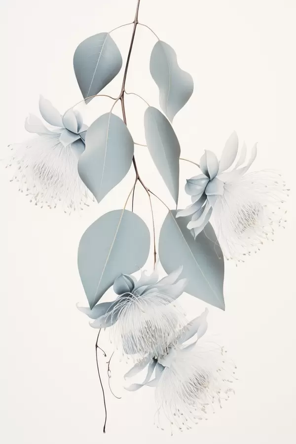 Постер на стіну Гілка евкаліпта з блакитним листям і білими квітами, світлий фон Nr f45947