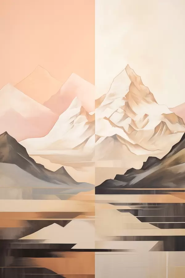 Постер на стіну Абстрактний пейзаж з горами та озером, пастельні кольори, мінімалістичний стиль Nr f45948