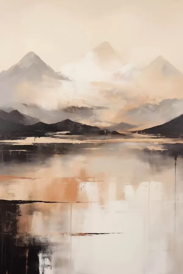 Постер на стіну Пейзажна картина з текстурою, що імітує гори та озеро Nr f45950