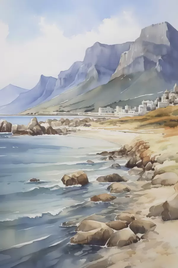 Постер на стіну Імітація акварелі на морському узбережжі Nr f45978
