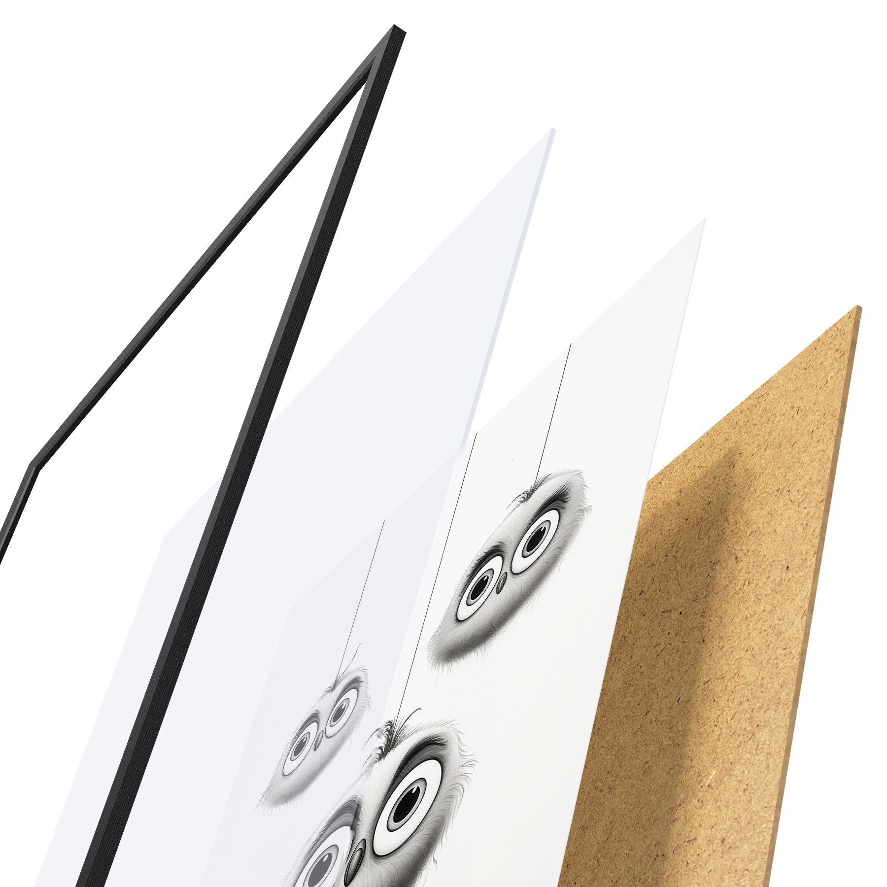 Постер складається з рами, оргскла, надрукованого зображення та підкладки з ДСП. Завдяки кріпленням на звороті плакат можна одразу ж повісити на стіну.