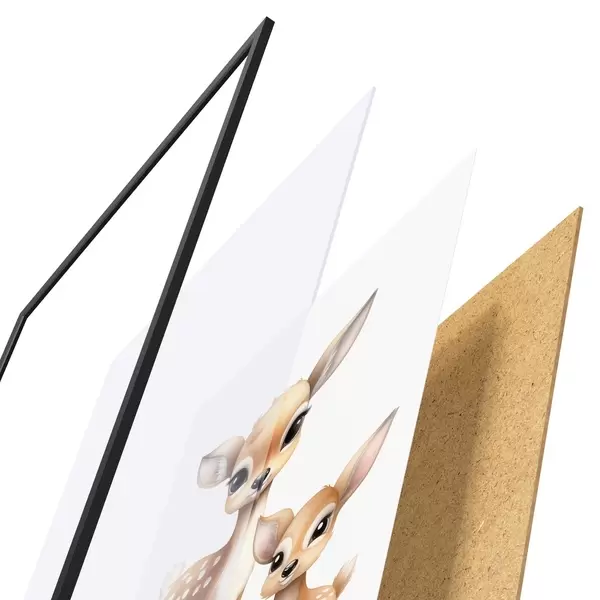 Постер складається з рами, оргскла, надрукованого зображення та підкладки з ДСП. Завдяки кріпленням на звороті плакат можна одразу ж повісити на стіну.